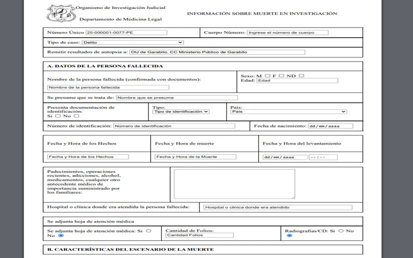 - Consiste en una fijación documental, este tipo de documento recoge las observaciones realizadas por autoridades judiciales o policiales en el lugar de los hechos. Incluye descripciones detalladas del entorno, condiciones del sitio, ubicación de evidencias y cualquier otro elemento visual relevante.